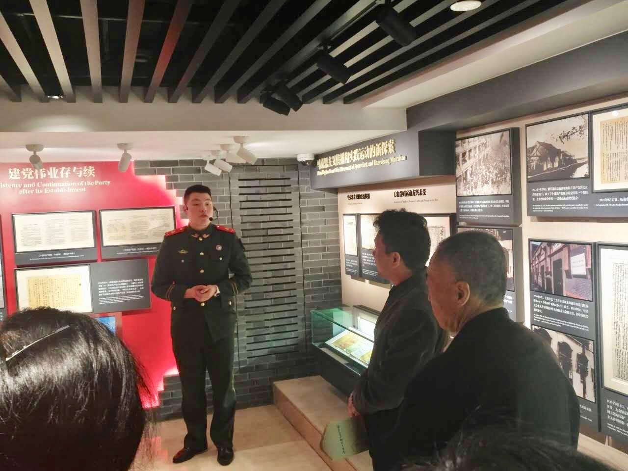 中共二大会址掩映在延中绿地的碧草和青竹间,共分为序厅、中共二大展厅、党章历程厅、中共二大会议旧址、平民女校旧址展厅五个部分。支部成员在展厅讲解员的带领下,逐一参观了这五个展厅。
