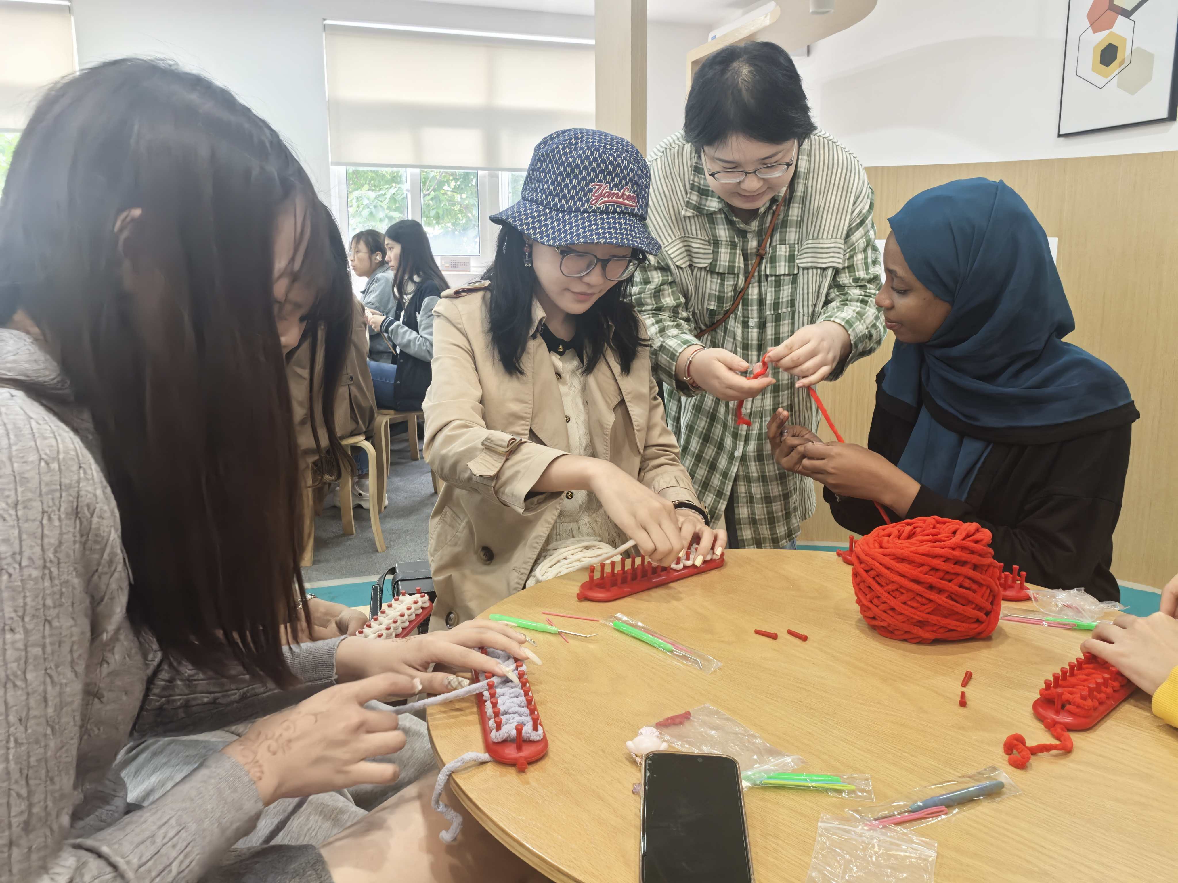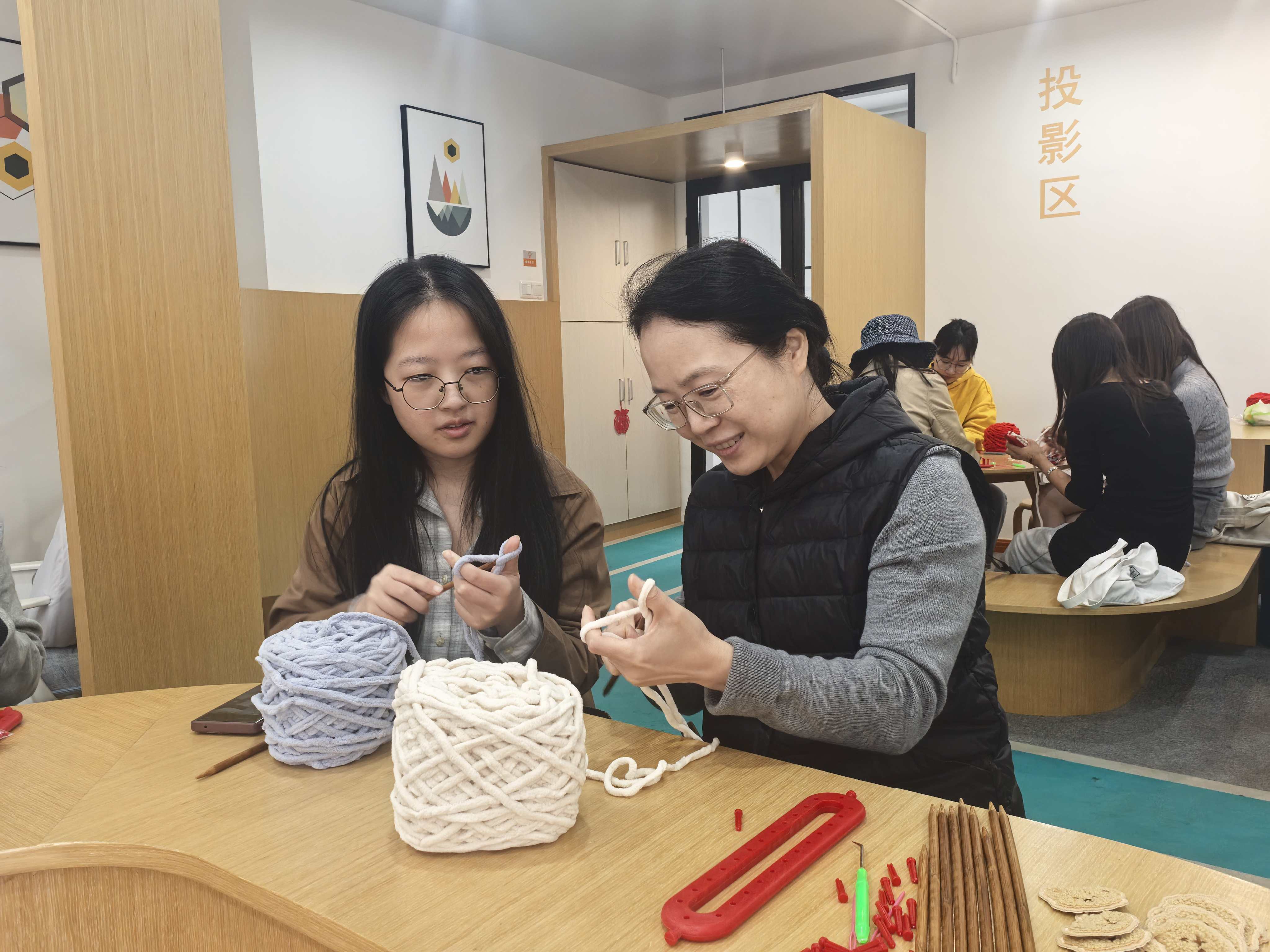 活动伊始,工作人员首先向同学们介绍了“霜降”节气的由来、气候特点及相关民俗,使大家对这一传统节气有了更深入的认识。随后,在温馨愉悦的氛围中,毛线编织环节正式展开。工作人员耐心地进行现场指导,从基础针法到简单作品的制作,逐步讲解演示。同学们兴趣盎然,积极动手尝试,互相学习帮助,活动室内充满了欢声笑语。整场活动气氛热烈,其乐融融。同学们不仅学习了霜降节气的文化知识,更在亲手实践的过程中感受到了手工编织的乐趣。