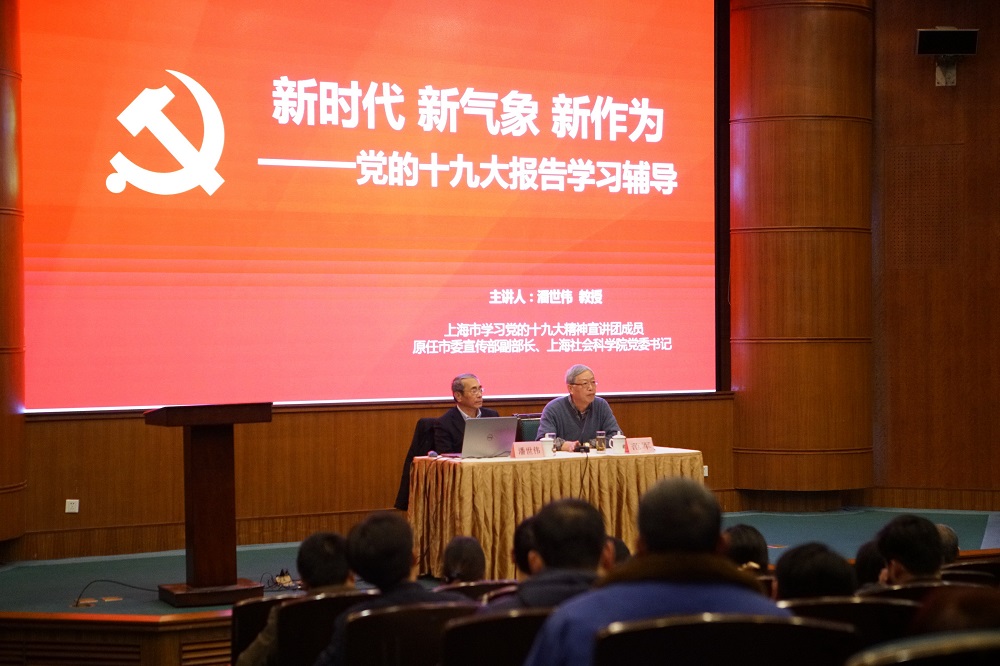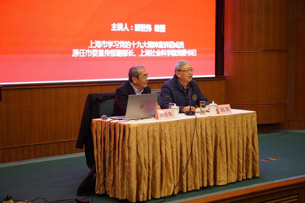 1月18日,为了进一步学习宣传贯彻党的十九大精神,在学校宣传部的支持下,后勤党工委在中北校区逸夫楼报告厅举办了党的十九大精神专题报告会。上海市学习党的十九大精神宣讲团成员、原任市委宣传部副部长、上海社会科学院党委书记潘世伟作为特邀嘉宾,带领大家深入系统地学习了党的十九大精神。报告会由原华东师范大学副校长范军主持。后勤党工委全体党员、中层干部、青年骨干,设计学院部分师生代表,社会企业党员共200余人聆听了宣讲报告。