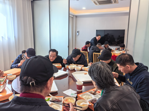 临近中午,退休职工在工作人员的陪同下来到普陀校区河东食堂三楼。熟悉的就餐环境、热气腾腾的校园美食,瞬间唤醒了大家的味觉记忆。食堂准备了当年深受职工喜爱的经典菜品,每一口都承载着难忘的校园时光。大家边吃边聊,回忆着当年在食堂就餐的场景,交流着退休后的生活趣事,美食香气与真挚情谊交织,构成了一幅温馨的“回家” 画卷。