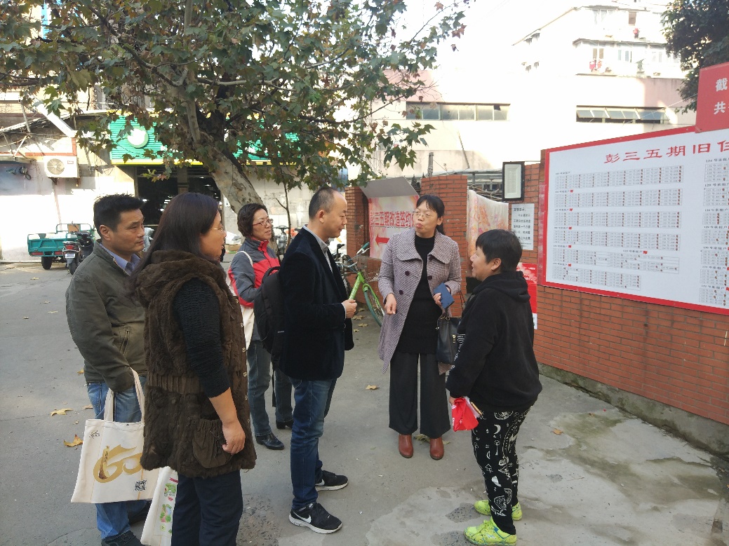 2018年11月26日下午,公房综合治理办公室主任刘长雪一行来到静安区闻喜路彭浦新村小区,就小区旧房改造工作进行调研。此行目的是为了推进学校老旧非成套公房整治、改造工作,从旧房改造成功案例中学习经验。后勤保障部房修办陈馨、陈家苹,师睦物业李萍、王彬等同志,参与了此次调研和学习工作。