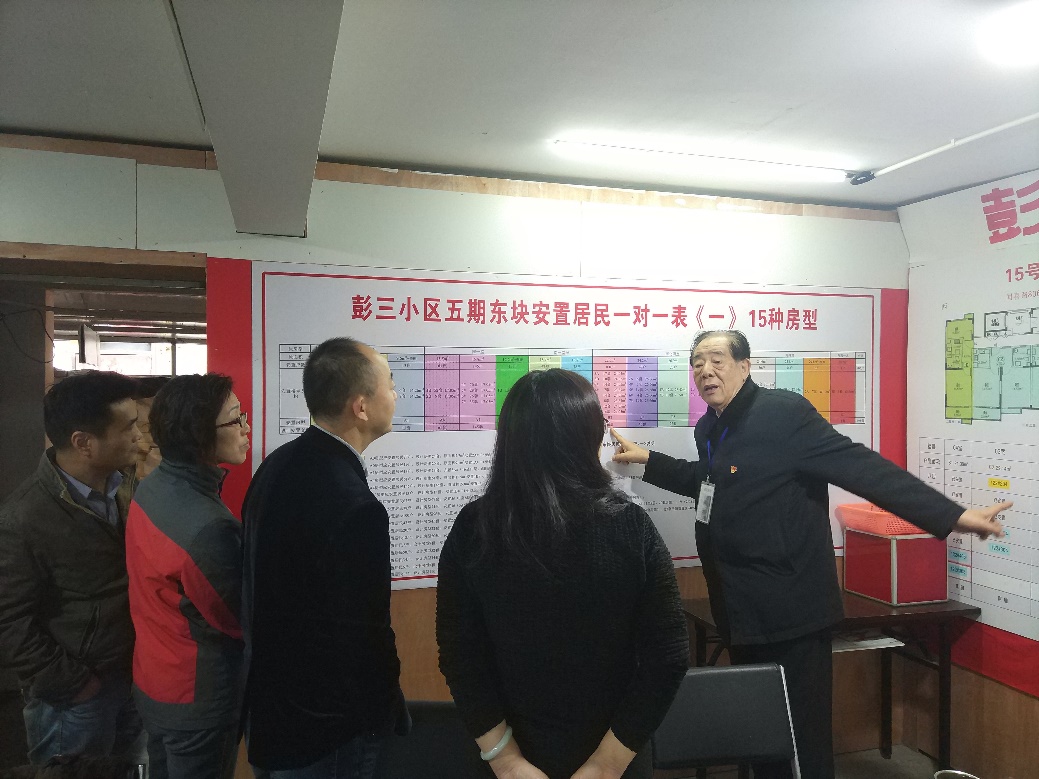 随后,彭浦新村旧房改造现场负责人须炳荣先生介绍旧房改造工作涉及面广、工作量大、任务繁重,涉及居民切身利益,每推进一步都要仔细研讨,充分沟通,不留后遗症。他又详细介绍了该村旧房改造方案以及16年来旧房改造工作历史、经验教训、解决问题策略等。
