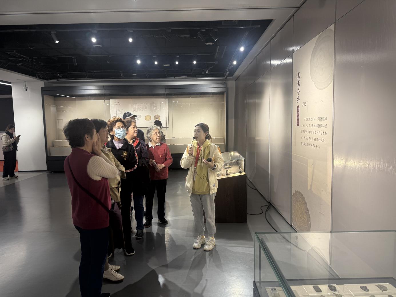 退休党员在纹饰精美的古代带具前驻足交流,从工艺细节中领略中华文明的源远流长,感受学校以文化建设赋能“卓越育人”的成果举措。