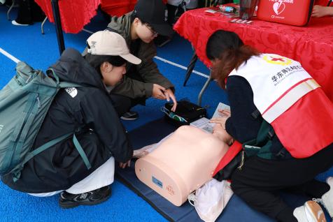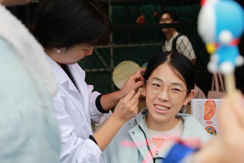 校医院特邀普陀区长风新村街道社区卫生服务中心的医疗专家现场提供中医耳穴疗法体验、基础健康数据测量、急救实操教学及中医茶饮DIY等特色医疗卫生服务。为前来咨询的300余名师生提供细致入微的一对一服务,不仅有效满足师生对健康信息与服务的需求,更深刻体现对全校师生身心健康的关注与呵护。