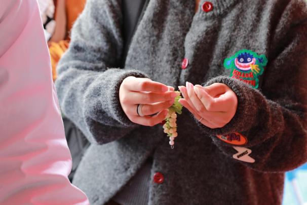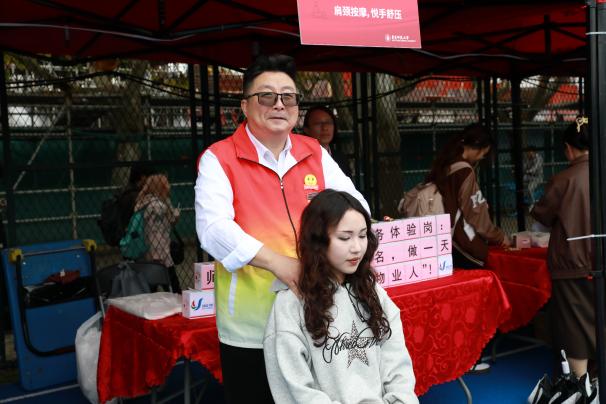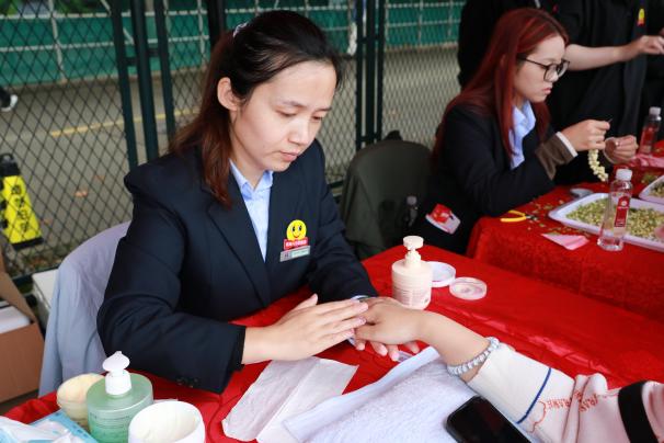 活动还设有后勤知识趣味问答,师生打卡集章即可参与热门项目。专业美甲师为50名师生提供美甲服务,上海东方大学城物业管理有限公司为40人提供肩颈按摩,上海生乐物业管理有限公司为498人开展手部护理与茉莉花手串DIY体验,中国电信则为30人提供手机贴膜及业务咨询,全方位提升师生参与感与满意度。