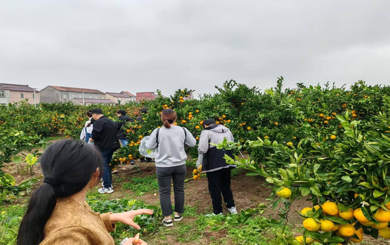 之后,进入合庆镇生态橘园游览。放眼望去,金灿灿的果实压弯枝头。大家换上轻便装、手提小果篮,瞬间化身“采摘达人”。“这棵甜!”“那边更大!”此起彼伏的“攻略”声让寂静的橘林秒变欢乐海洋。不到半小时,大家就满载着“战利品”,讨论着橘子的各种吃法和橘皮的多种利用方式,把丰收的喜悦“拉至满格”。