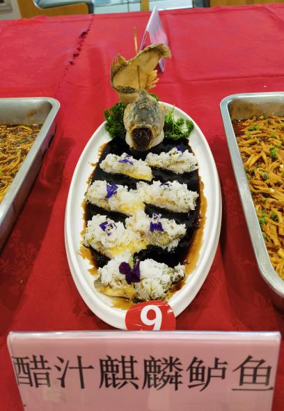 比赛现场气氛热烈。红案赛区内,规定菜品考验选手对传统口味的精准把握,而创意菜品则要求他们具备创新意识。参赛选手们动作娴熟——颠勺、调味、勾芡一气呵成,从鱼香肉丝到杏鲍菇焗扇贝、醋汁麒麟鲈鱼……一道道菜品陆续呈现,不仅色香味形俱佳,也体现了食堂师傅们扎实的基本功与创意巧思。