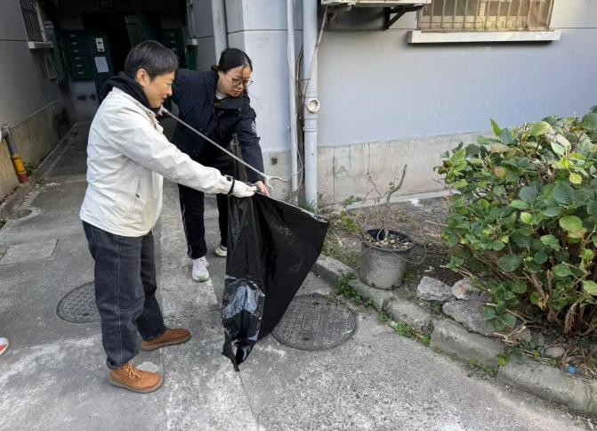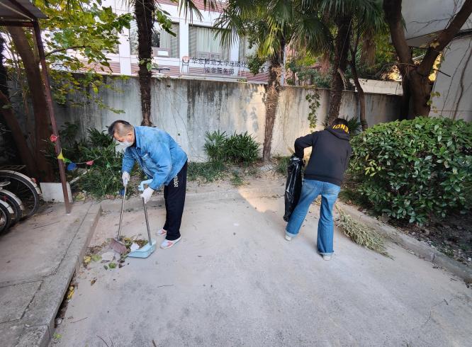 活动当天中心经理亲自带队,全体员工手持铲子、扫帚、喷壶等工具,按照“不留死角、不漏一处”的标准,展开了“地毯式”清洁工作。面对楼道里黏附得十分牢固的“牛皮癣小广告”,大家一点点地将其铲除,还用湿抹布反复擦拭,就连墙角缝隙里的残胶也被仔细清理干净。在楼栋周边的绿化带和单元门口的角落,大家弯腰捡拾枯枝落叶,清运废旧纸箱等杂物,即使汗水湿了衣服也没有一个人停下手中的活儿。大家还相互打趣道:“降温天气干活反而觉得更舒爽!”