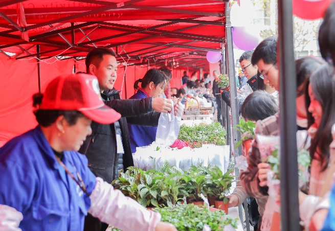 而人气最足最拥挤的摊位,还数校园环境管理中心带来的宣传垃圾分类、传播绿植养护知识,免费送领小盆栽的活动。作为传统项目,今年中心将垃圾分类知识融入活动中,答对题目方能领取绿植,当天近十个品种合计1200余份小盆栽分发给了师生,师生们拿着领取到的小绿植在活动展板前纷纷留下了灿烂的笑容。