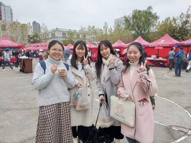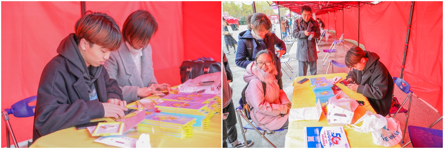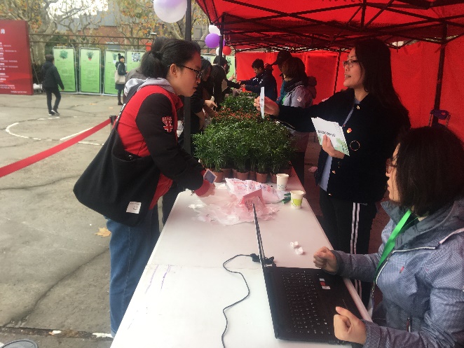 今年活动现场还有这么一群特别的人,他们就是后勤党工委第五支部的党员们,他们立足自身岗位,充分发挥党员先锋模范作用,带头充当志愿者,提供现场指引并设计物业方面的有奖竞猜环节,精心挑选的绿色环保的涂鸦式购物袋也非常受师生的欢迎,摊位前瞬间排了长队,当天共发放环保帆布袋50个,折叠购物袋60个。