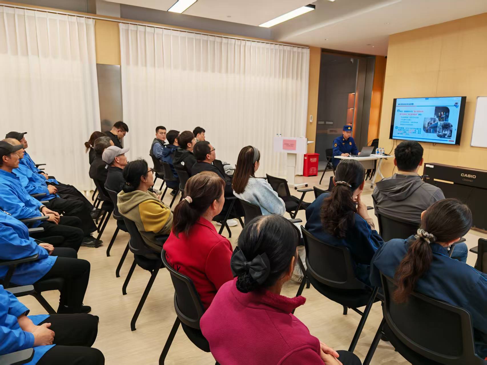 为确保工作人员能够在火灾事故发生时快速、有效开展应急处置,活动中组织工作人员开展火灾应急处置技能再学习、再巩固。活动邀请到专业消防人员进行现场指导,通过理论讲解与实操演练相结合的方式,重温灭火器、消防栓的正确使用方法,进一步提升工作人员的火灾应急反应能力和实操技能,确保在面对突发火情时能够沉着应对、科学处置的能力。