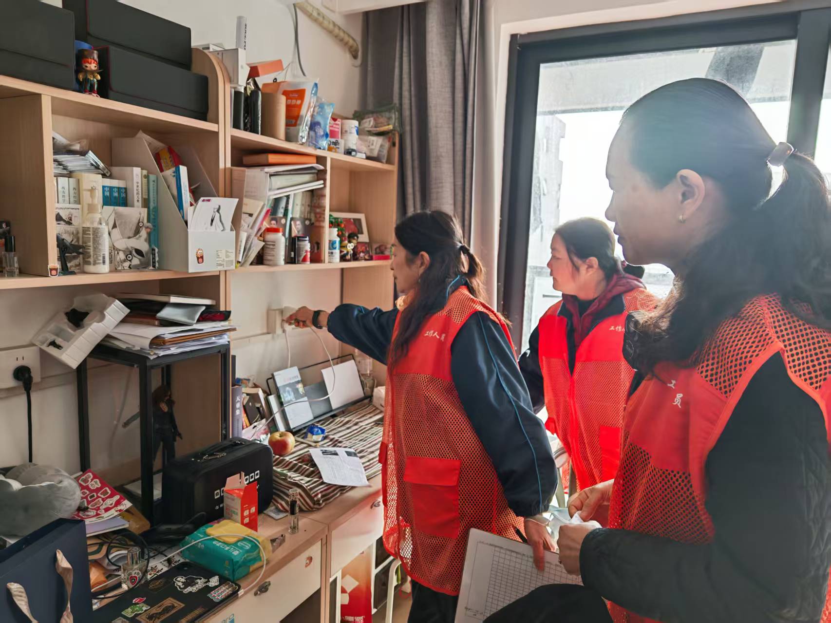 学生宿舍是人员密集的重点区域,也是用电、用火安全管理的重中之重。创社区学生服务办公室结合学生群体的生活特点,对学生宿舍开展针对性的安全检查与宣传教育工作。检查人员分组进入学生宿舍,重点排查是否存在使用不符合国家标准的电器、私拉电线、卧床吸烟、存放易燃易爆物品等危险行为,对发现的问题现场进行纠正指导;同时,通过张贴安全温馨提示贴、发放宣传单等方式,向学生普及秋冬季节用电、用火安全常识,提醒学生时刻警惕火灾风险,引导学生树立“安全第一”意识,主动遵守宿舍安全管理规定,共同营造安全的住宿环境。
