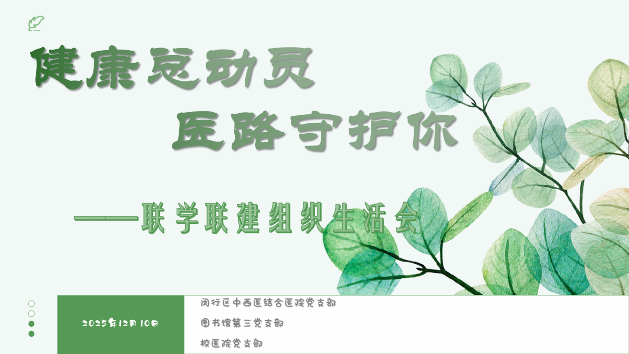 为深入推进党建与业务融合,创新服务师生健康形式,12月10日,校医院党支部联合图书馆第三党支部,并特邀闵行区中西医结合医院中医医师,在校医院四楼会议室共同举办“中医养生 守护健康”组织生活会。