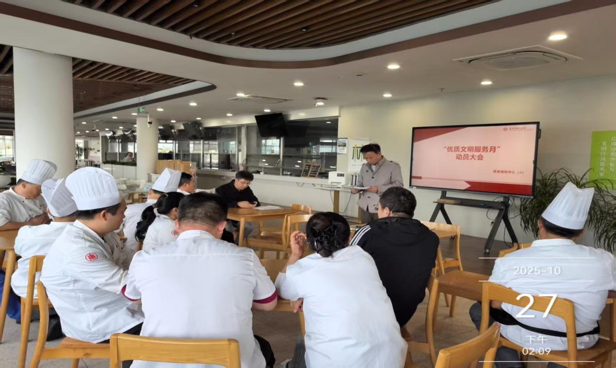 10月27日,中心召开动员大会,向各餐厅主任和班组长以上员工传达和布置后勤保障部关于开展“优质文明服务月”活动的通知,明确活动意义、目标和要求。