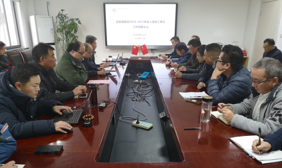 12月24日上午,后勤保障部2020-2021年度入围施工单位工作部署会议在中山北路校区后勤楼206会议室召开。后勤保障部部长赵健、修缮管理办公室工作人员、修建与装潢服务中心经理、2020-2021年度入围施工单位项目负责人参加会议,会议由江铁锋副部长主持。