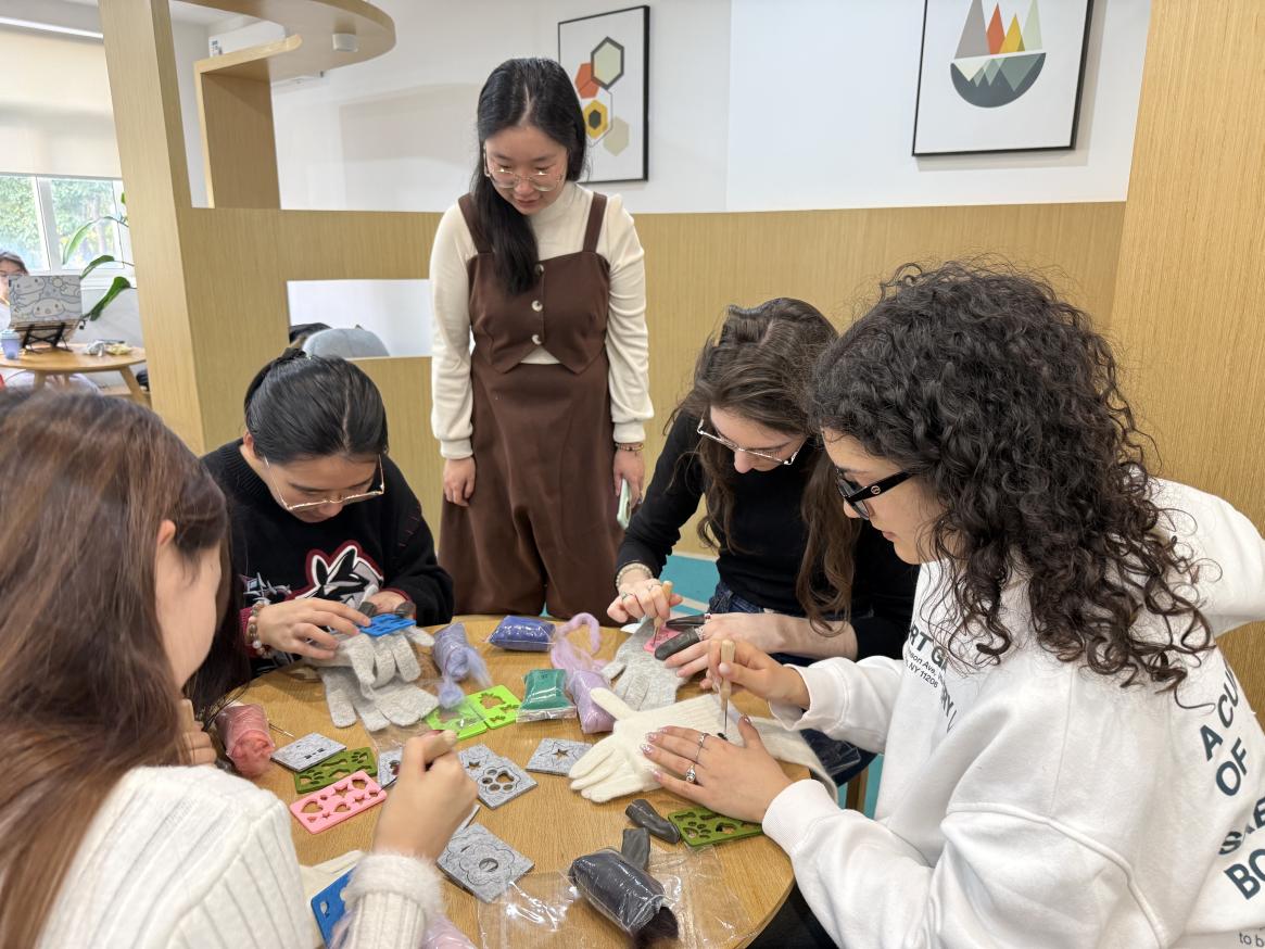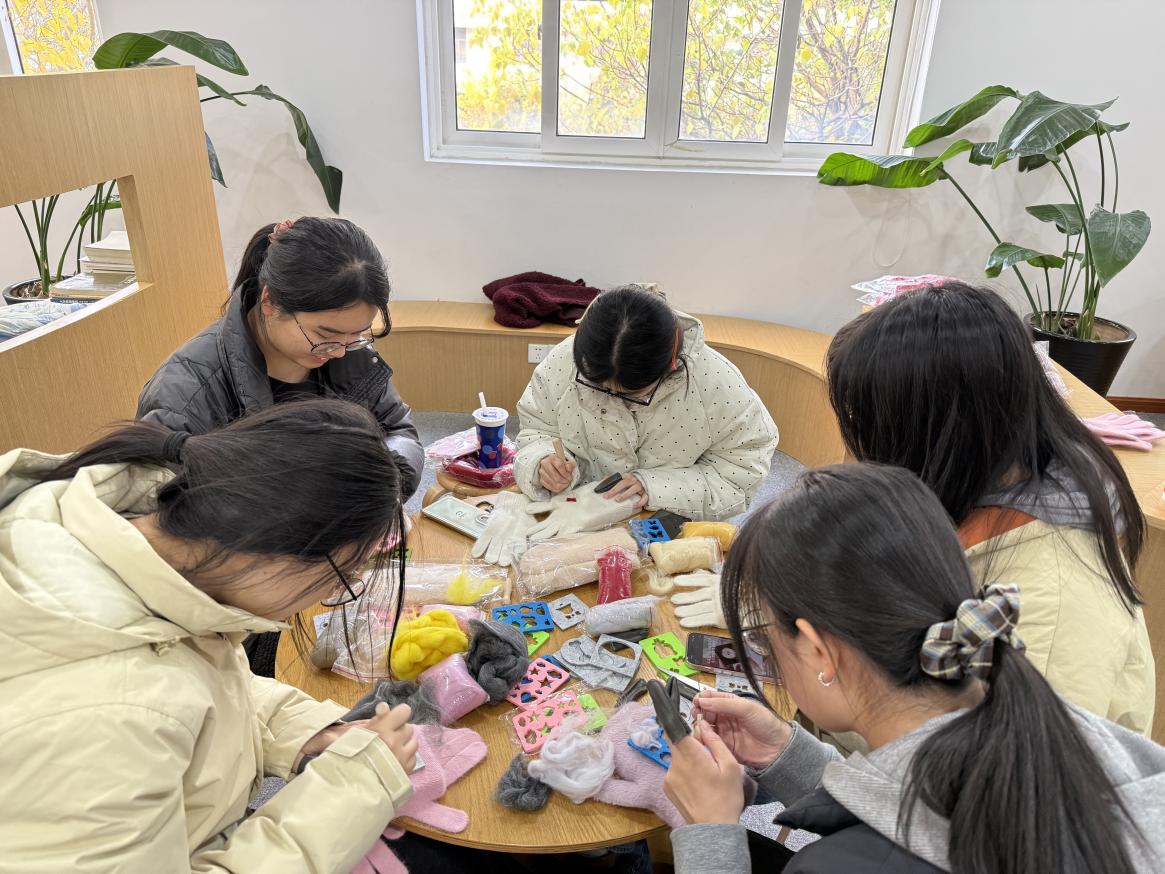 为弘扬中华优秀传统文化,丰富校园文化生活,宿舍与教学楼服务中心(1)于 12月 17日下午,在第七宿舍二楼活动室开展宿舍系列文化活动——冬至·羊毛毡手工艺体验。活动以传统节气为引,以手工艺为媒,吸引20余名同学踊跃参与,在指尖的创作中感受冬至的温暖氛围。