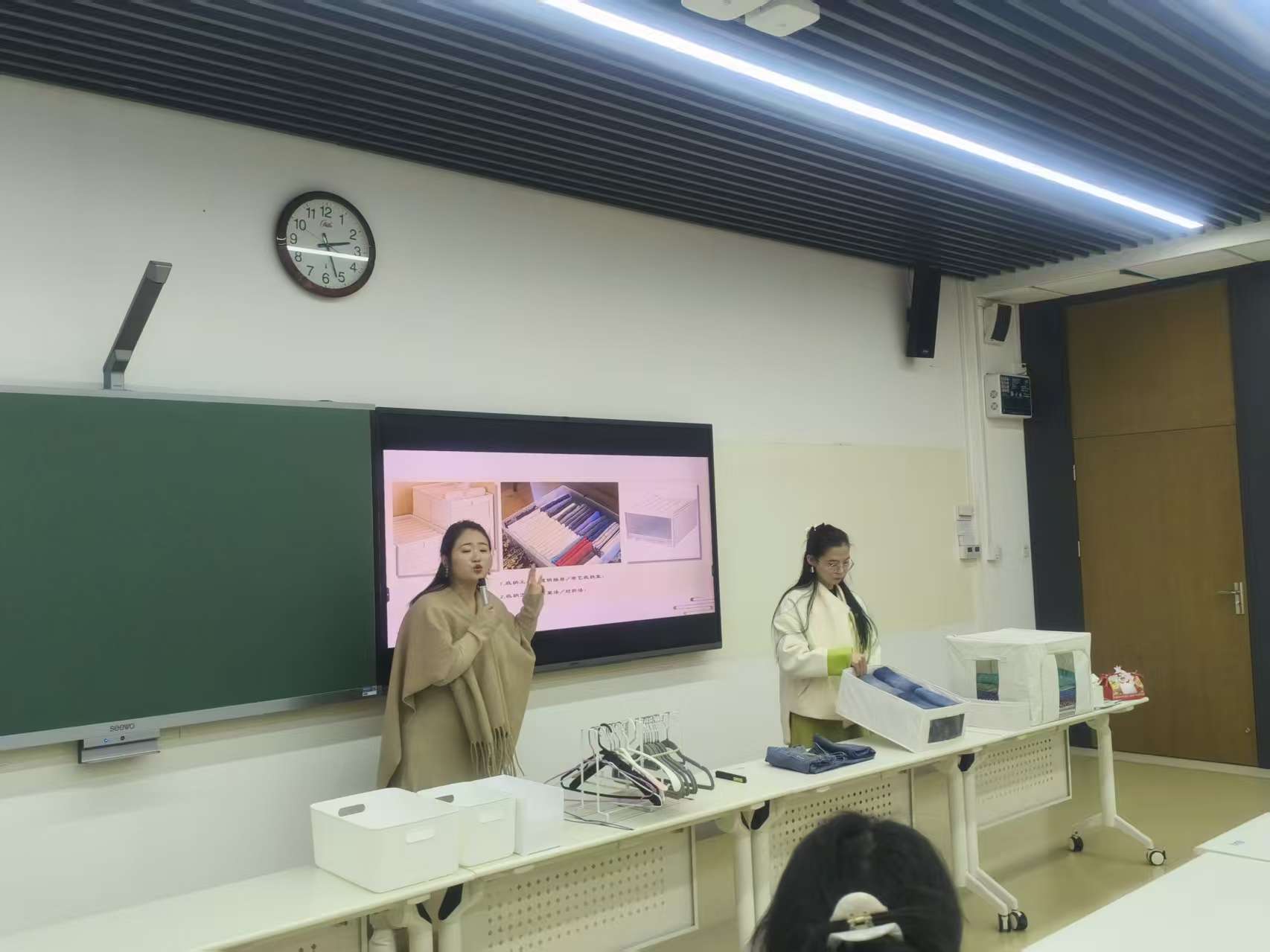 12月12日,活动特邀业界资深整理收纳讲师夏影为同学开展题为《寝室收纳与空间管理实践》的专题讲座。夏老师分析了学生宿舍上床下桌的空间收纳特点,教授同学如何以“一臂大法”确认自己的“黄金收纳区”并最大化利用每一寸空间。夏老师从桌面整理技巧,衣柜收纳优化,底层空间利用等方面依次入手,讲解如何通过合理使用收纳工具、抽屉分区、衣物悬挂及折叠等方法实现高效、科学的收纳。工作人员同步演示操作,使现场的同学更清晰直观地理解和掌握。