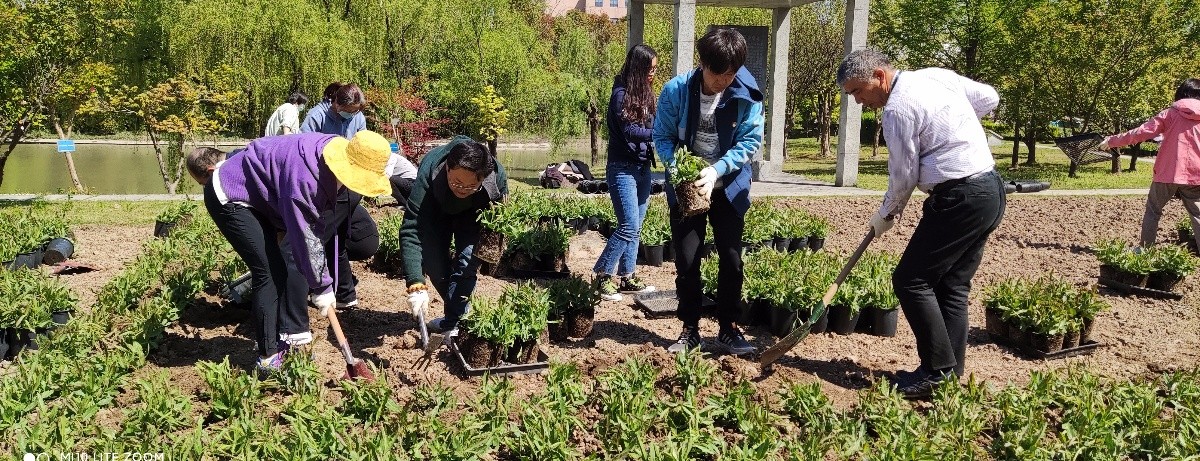 4月9日,后勤第四支部党员参加党史学习教育之毕业花海种植活动