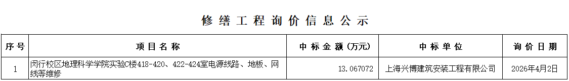 修缮工程询价信息公示