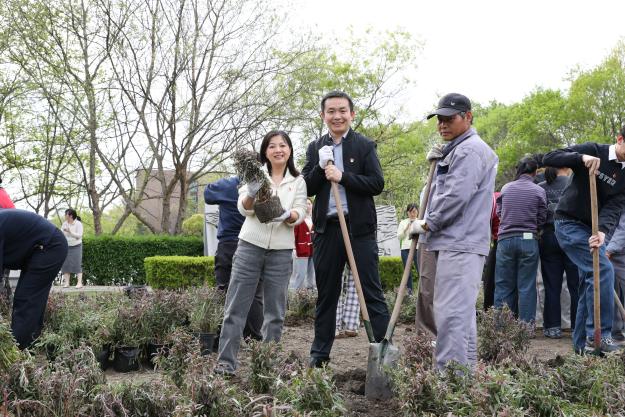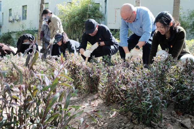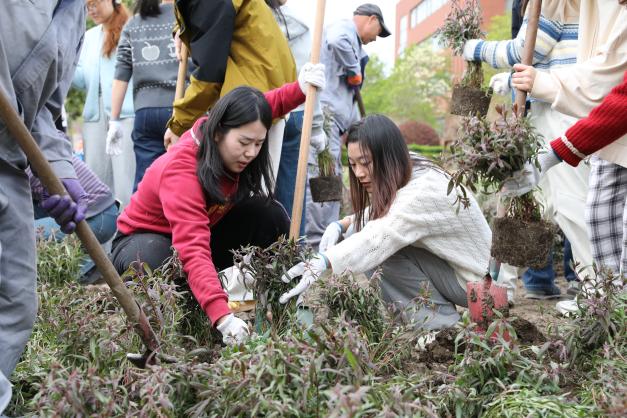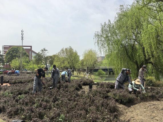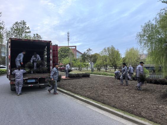 4月7日下午15时,闵行校区种植活动正式启动。师生们分成若干小组,在专业绿化师傅指导下协作栽种。大家小心翼翼地将苗木脱盆、覆土、压实,每一道工序都饱含着对校园的深厚情感。后勤保障部部长刘萍带队参与劳动,后勤党委党员佩戴党员徽章,积极参与劳动。今年,活动首次实现两校区联动。在普陀校区,由后勤保障部党委书记魏勇带队,后勤各党支部党员代表、资产经营公司代表共同在俊秀楼北侧空地种下约1000余株紫叶千鸟花。该区域经过前期特别设计,预留将作为今后普陀校区专属毕业花观赏点,供同学们日后拍照打卡、留念青春。