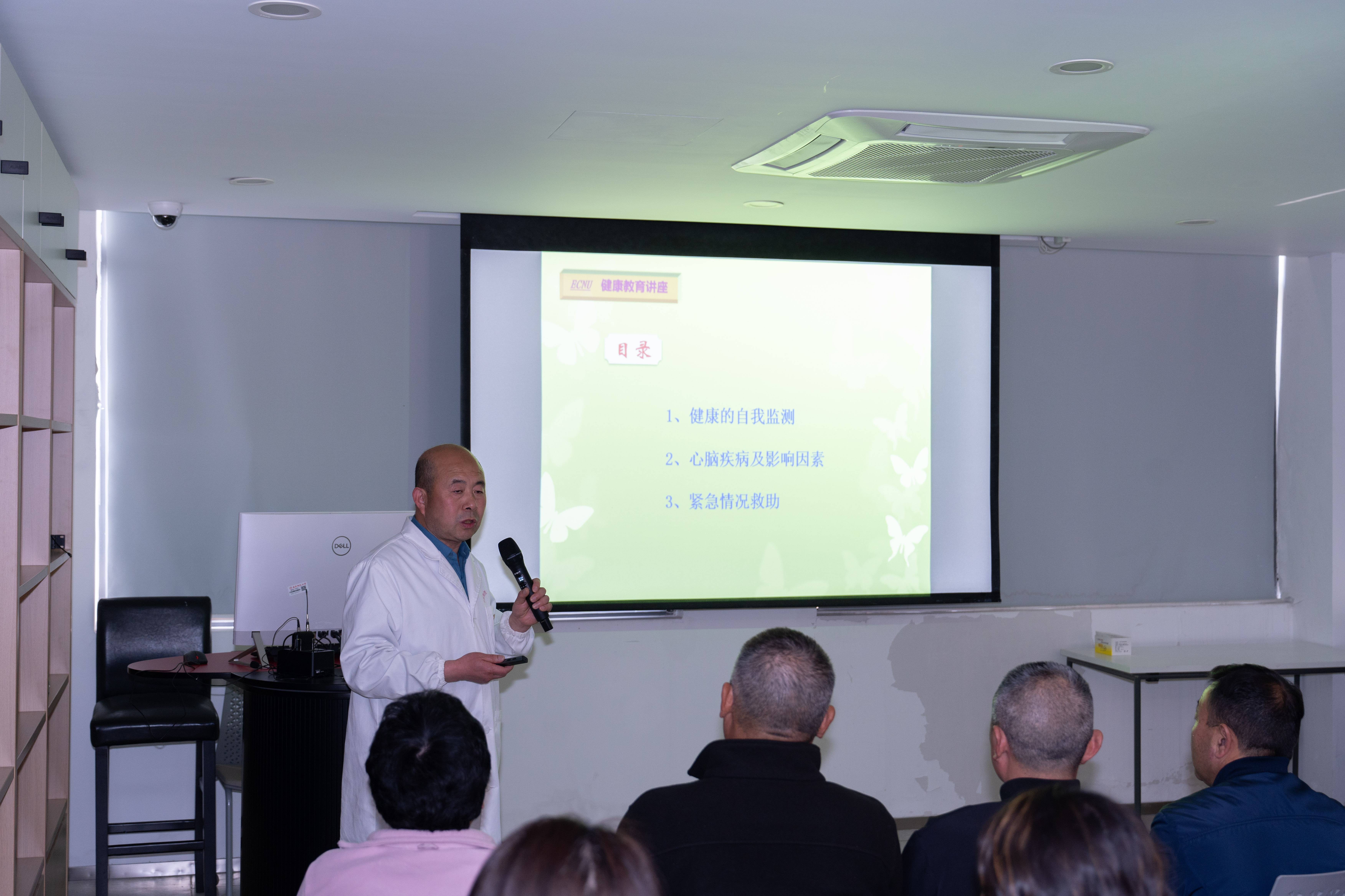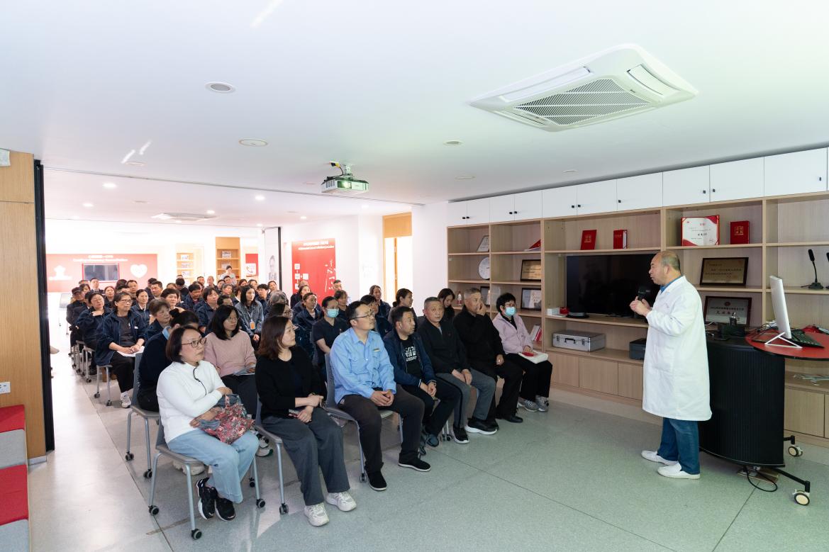 本次讲座在校医院四楼急救教育实践基地举行,由副主任医师蒋学胜现场授课。蒋医生从近期社会名人及高校学者心脏病猝死事件频发的现象切入,引发了在场员工对自身健康状况的关注与思考。结合中心员工的年龄结构、日常工作特点及服务对象实际,他以通俗易懂的语言,系统讲解了自我健康评估的方法,以及急性心源性疾病、脑卒中(中风)等高危信号的识别与初步自救措施。讲座中,蒋医生特别强调,有效控制高血脂、高血压和糖尿病等基础疾病,对于预防心脑血管疾病具有重要意义,并倡导大家保持均衡饮食、适度运动、戒烟限酒,养成健康生活方式,实现身心全面健康。