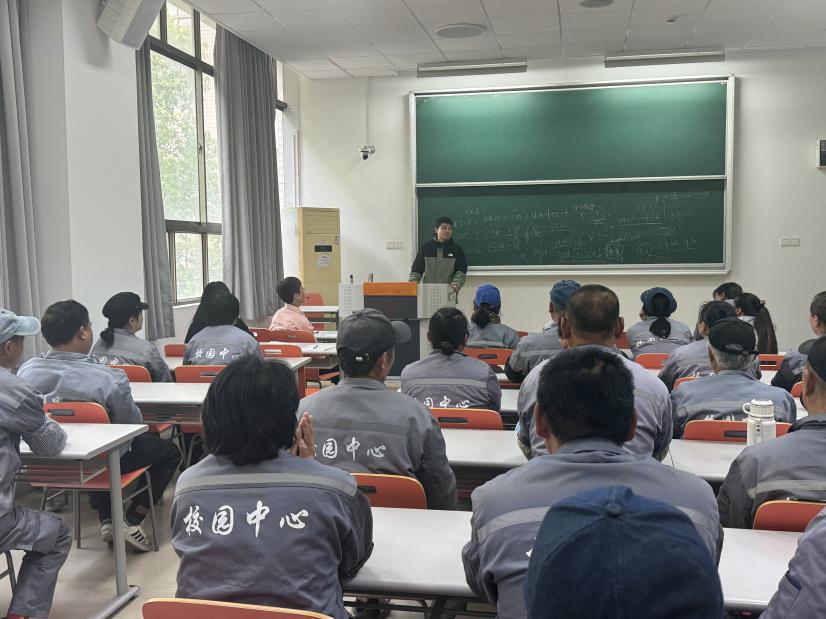 为进一步强化校园环境中心内控管理,提升后勤服务质量与安全保障能力,校园环境中心分别于2026年4月3日、4月15日在闵行校区和普陀校区组织开展了规章制度专题培训。中心全体管理人员及一线员工悉数参加此次学习,培训由校园中心副经理全萍主持。
