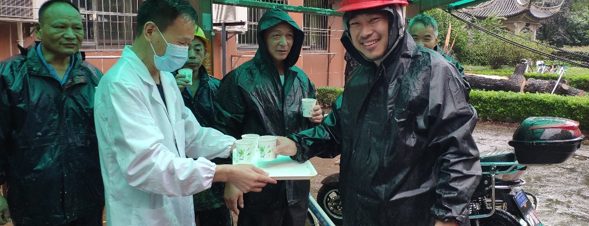 后勤人全力抗击台风“烟花”——食堂为一线抢修人员送上暖心姜茶