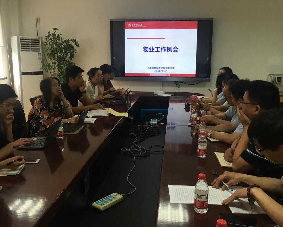 7月10日下午,宿舍与物业管理办公室在中北校区后勤楼206会议室召开物业工作例会。后勤保障部副部长毛云飞,宿舍与物业管理办公室、能源与环境管理办公室、校园环境中心、宿教中心(1)(2)、生乐物业、瀛海三幸物业、六角物业等相关负责人共计24人参加了此次会议。会议由后勤保障部副部长王婧主持。