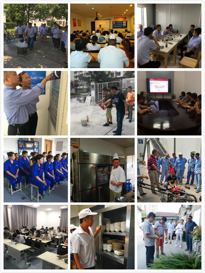 活动期间,后勤各服务中心及社会企业结合部门工作特点,围绕“质量和安全”的主题,开展了10余场特色鲜明、内容丰富的主题活动。宿舍与教学楼服务中心组织管理员专题学习了质量安全网格化管理方案,并举行了烟感报警处置程序应急演练及楼宇安全专项检查;膳食服务中心组织食堂员工开展了高校食堂“6T”实务管理培训及食堂消防安全技能实战演习;交通运输服务中心组织驾驶员对灭火器的种类和操作方法进行了专题学习;校园环境管理中心组织员工对油锯、割杆机等绿化机械设备进行了理论培训和操作演练;修建装潢服务中心举行了消防安全知识科普讲座;生乐、六角、瀛海三幸等物业管理公司在各自服务区域,组织员工开展了理论教学与消防演练相结合的专题培训。