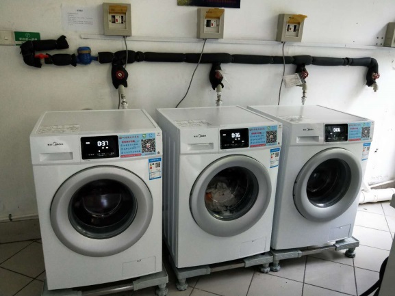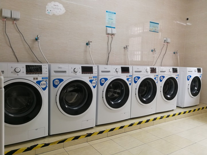 暑期,后勤保障部根据学生的需求,对洗衣机的支付方式、洗衣类别、洗衣资费等与厂家进行洽谈,两校区共购置了298台美的8kg容量滚筒洗衣机。为此,后勤保障部前期做了水电方面的检修,如排水管、排水地漏、进水龙头、空气开关的选址与检测等。新洗衣机覆盖全校所有学生宿舍楼,最大程度上方便了同学们的使用。