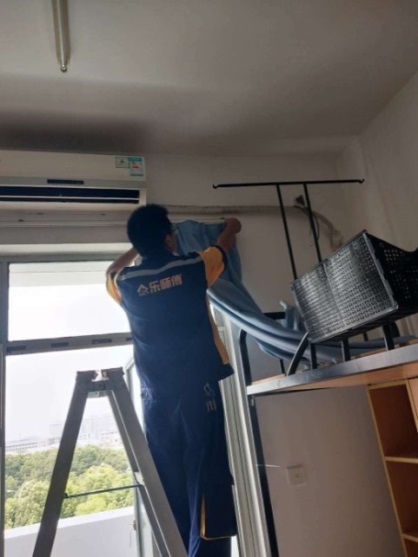 后勤保障部在暑期安排工程人员对学生退宿房间进行了涂料粉刷、空调拆卸、打孔、安装、家具维修、电风扇的清洗、维修及其他保洁工作。 退宿寝室安排工程人员拆卸窗帘、电风扇、宿管员协助对窗帘和风扇罩子进行了清洗、窗帘挂钩安装等工作,对部分家具面板出现的脱落严重与抽屉滑轨损坏等情况进行了排查,全力保障新学期的宿舍使用。