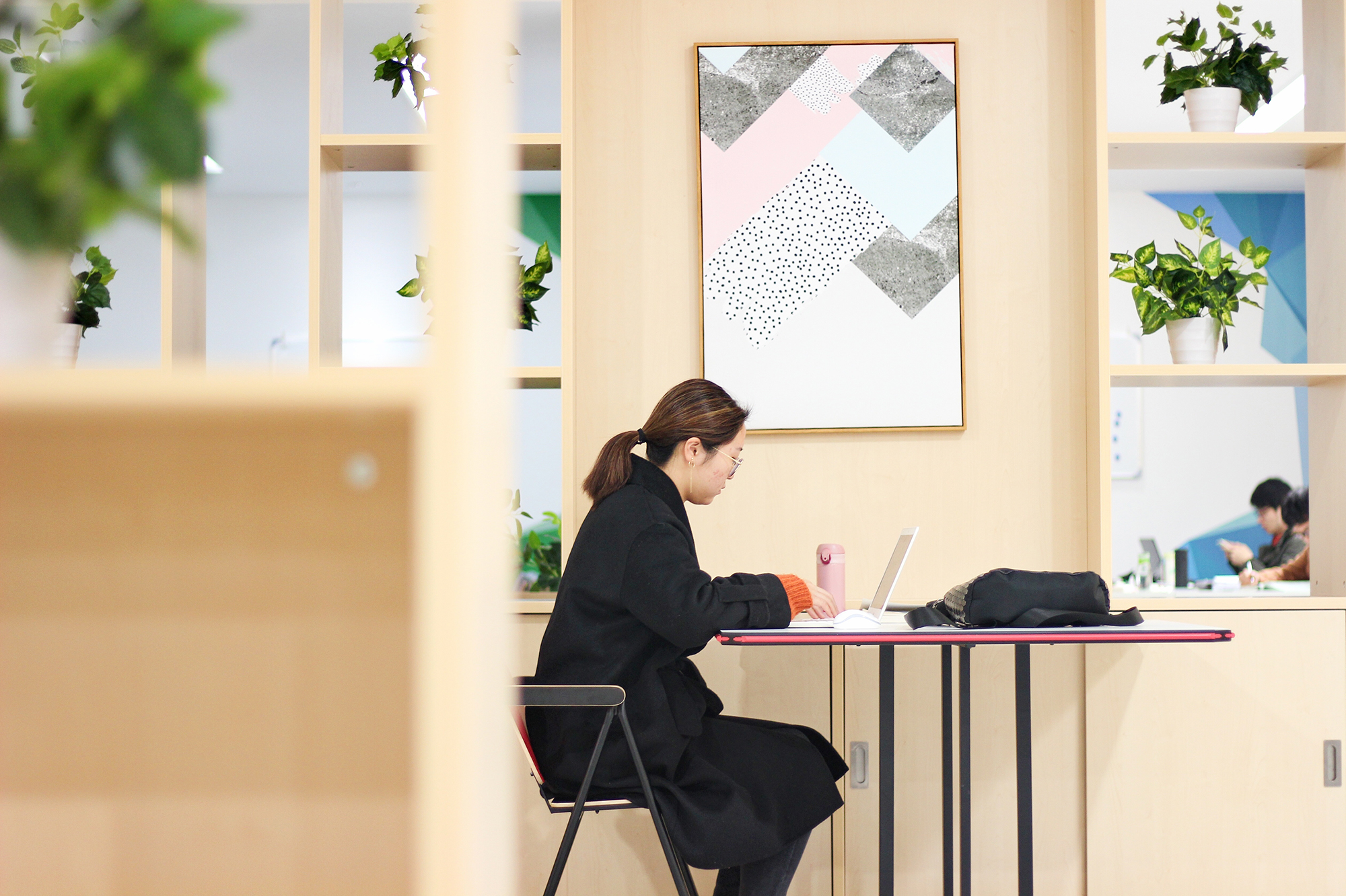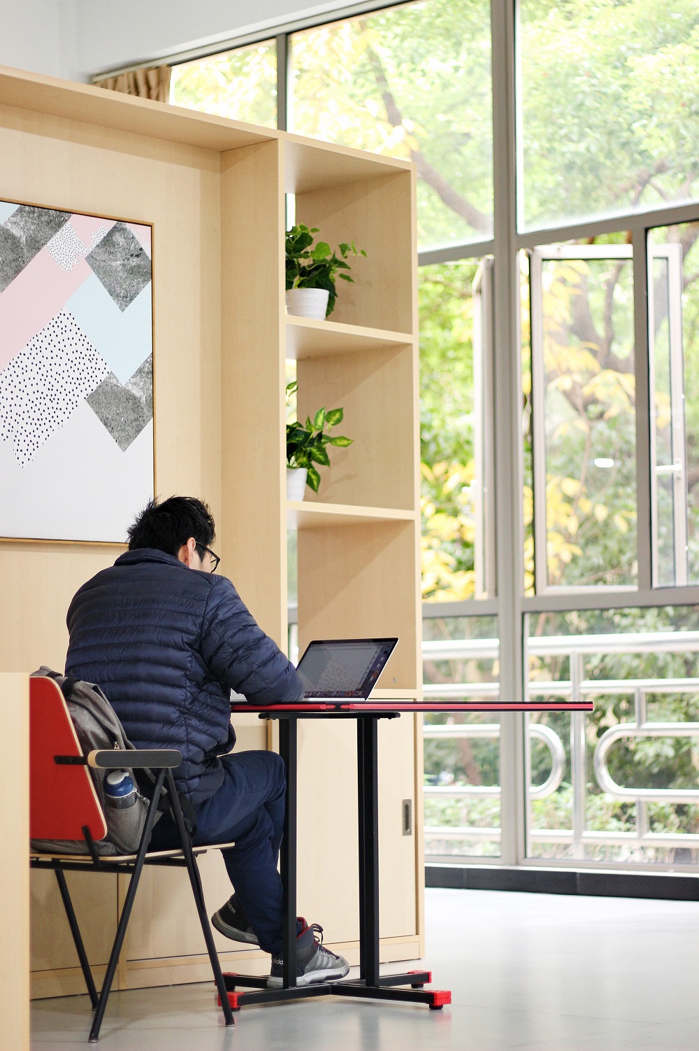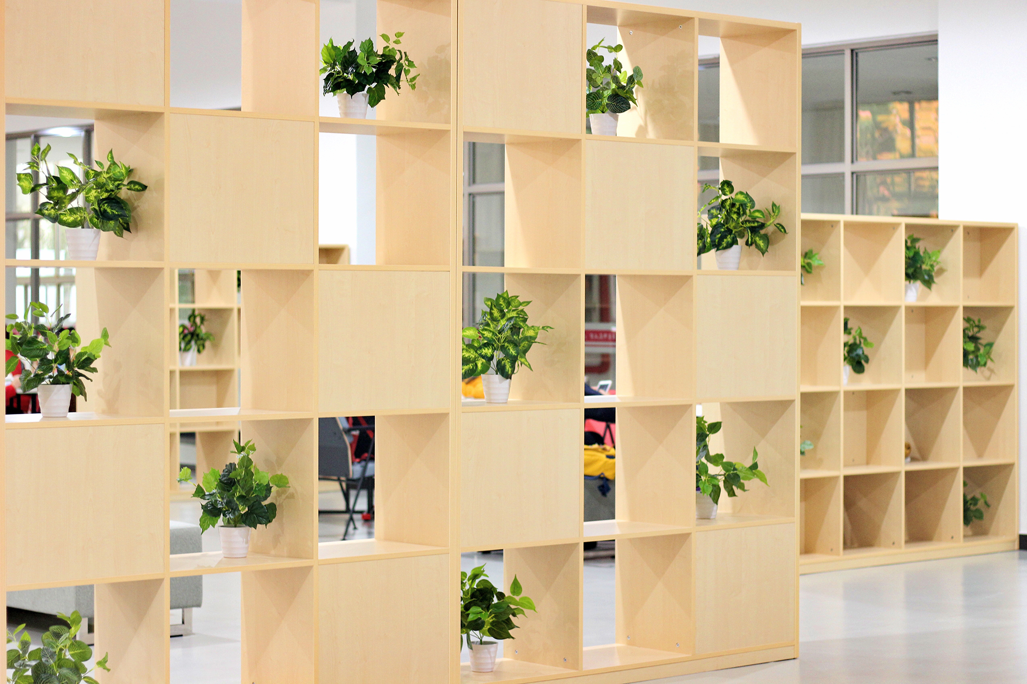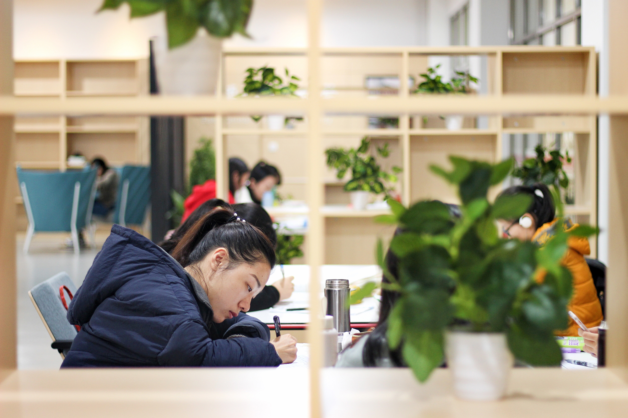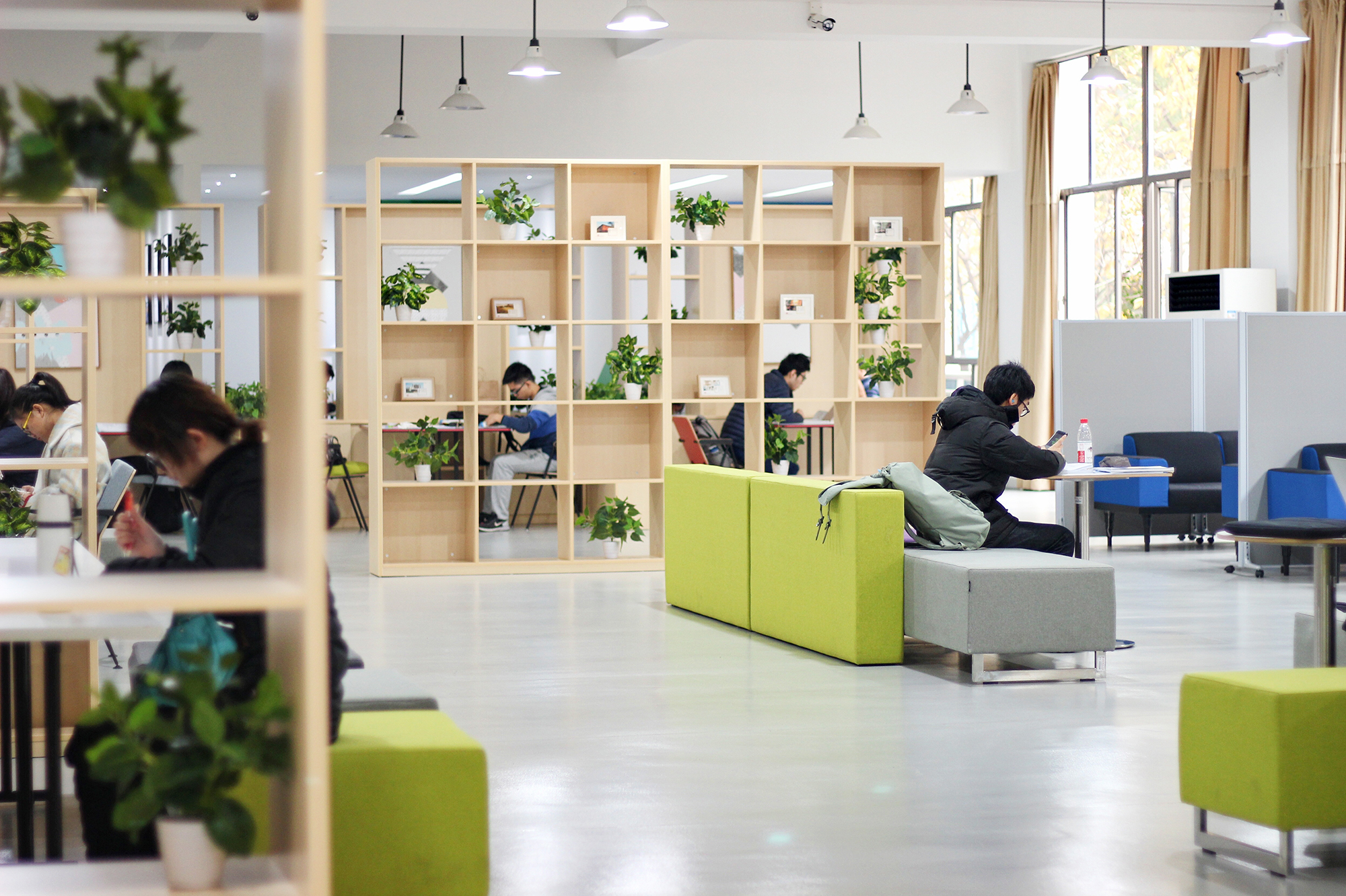 改造后的田家炳楼117-119自习室,温暖的原木色和清新绿植搭配带来家的温馨