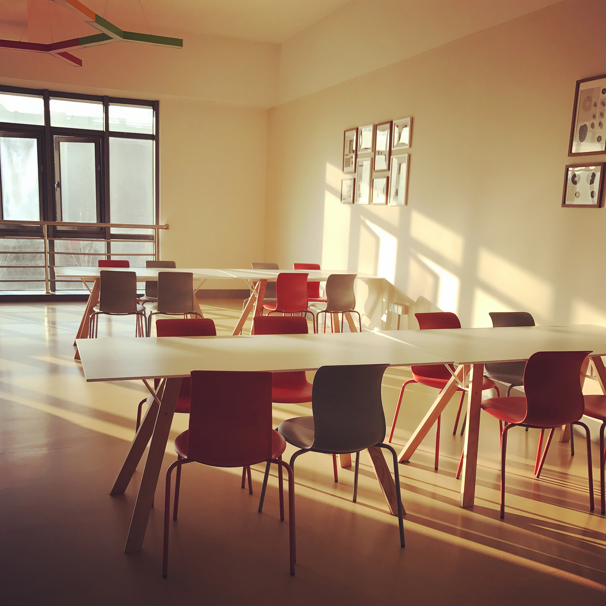 许多师生反应,此次改建中,最让人印象深刻的是设计者的“调色盘”效应,对有限空间内色彩种类、纯度、邻近色配比的把握,以及结合材质、面积、功能的考量,都给人以耳目一新且和谐舒适的感受。色彩在空间的存在是有节奏的。在空间设计中,色彩是最具有影响力的元素之一。在空间色彩设计里,色彩是分主色、次色、点缀色,并扮演不同的角色。通过合理的色彩搭配和组合,可以更加烘托出空间的气氛,可以给人以视觉上的享受。