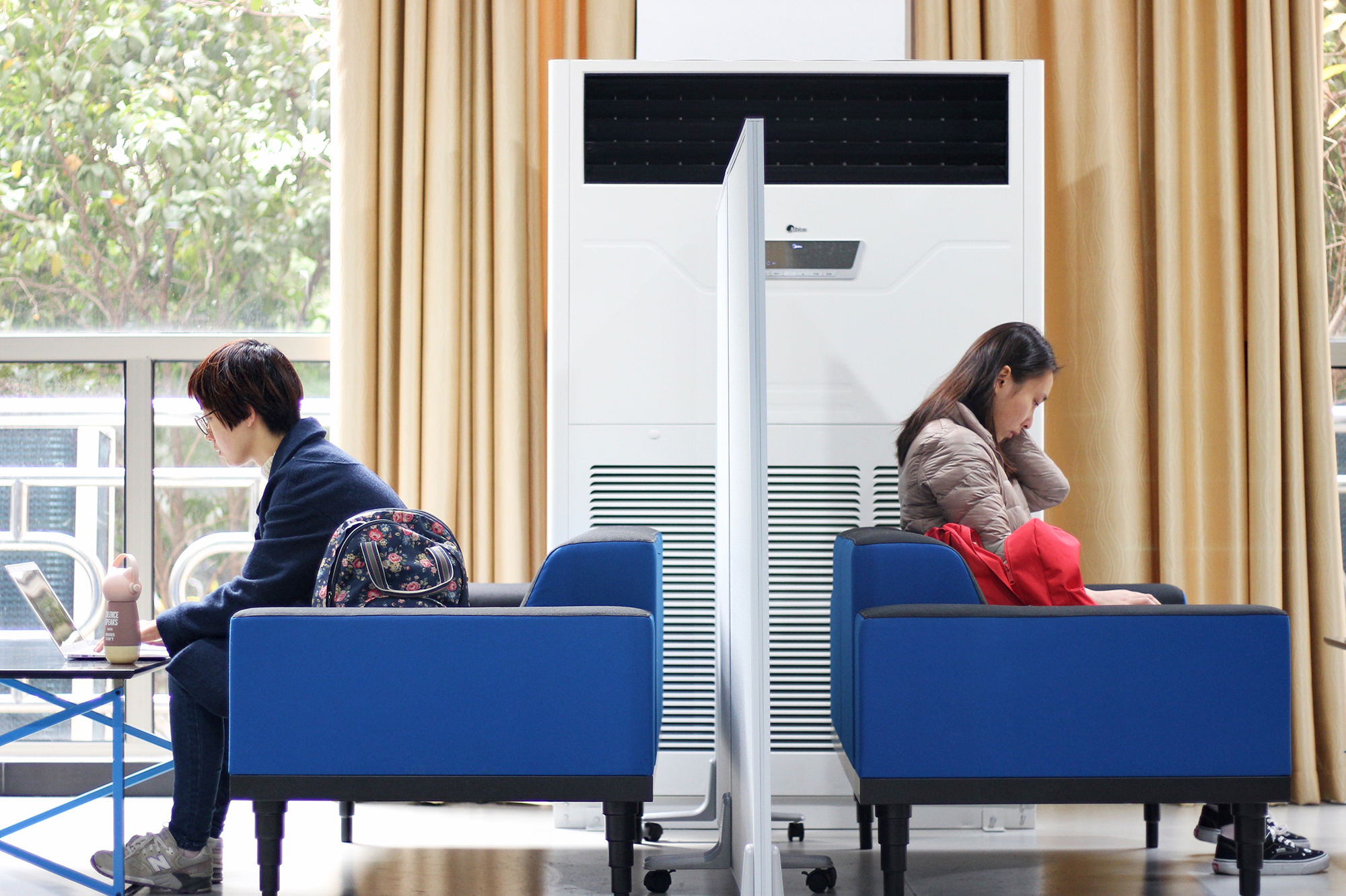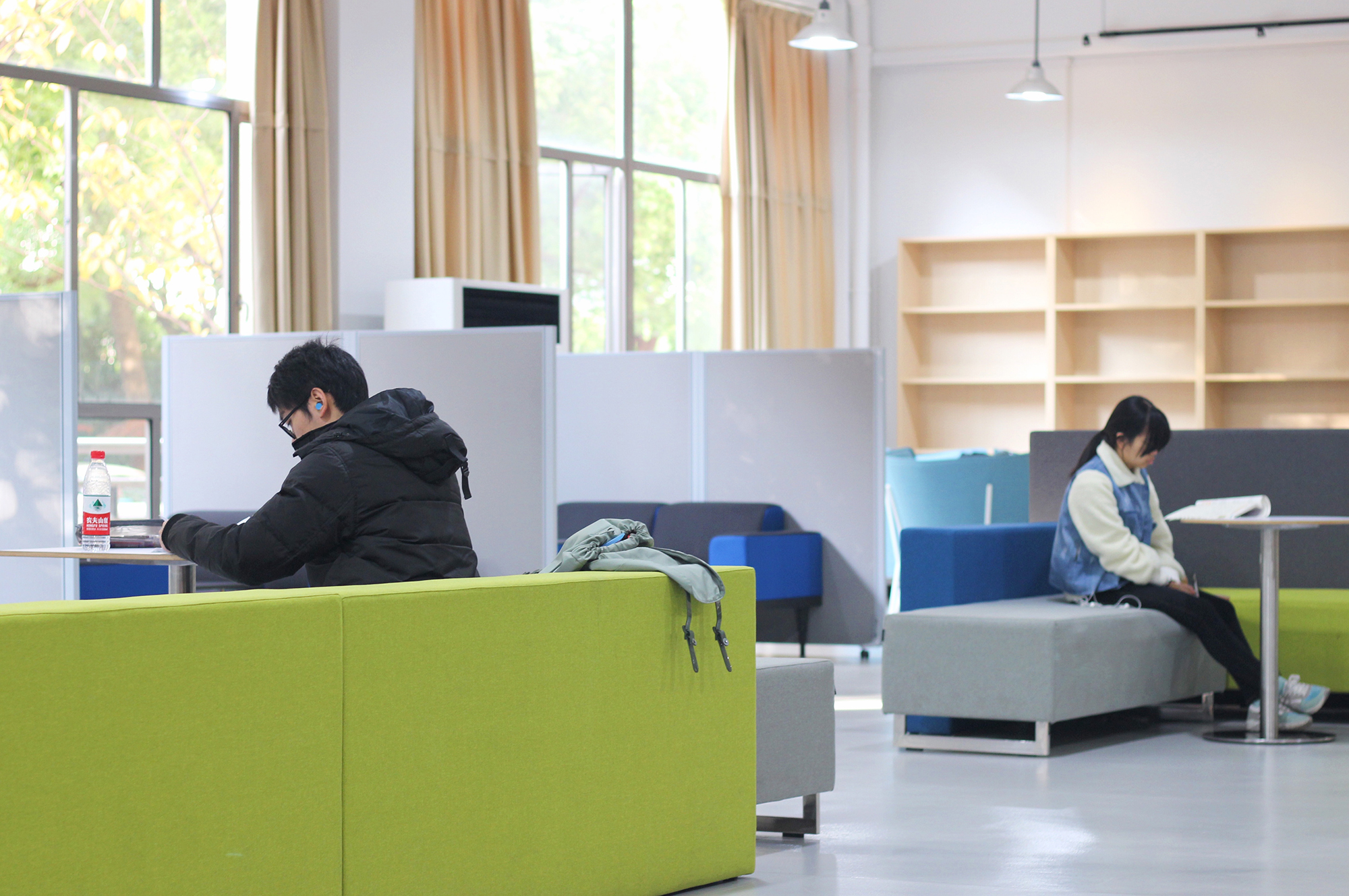 据后勤保障部相关负责人介绍,闵行校区第一、第二教学楼拥有大面积的门厅和走廊区域,且日常人流量大。这些空间过去是不被利用的“消极空间”,如今经过重新设计,让消极空间积极化。