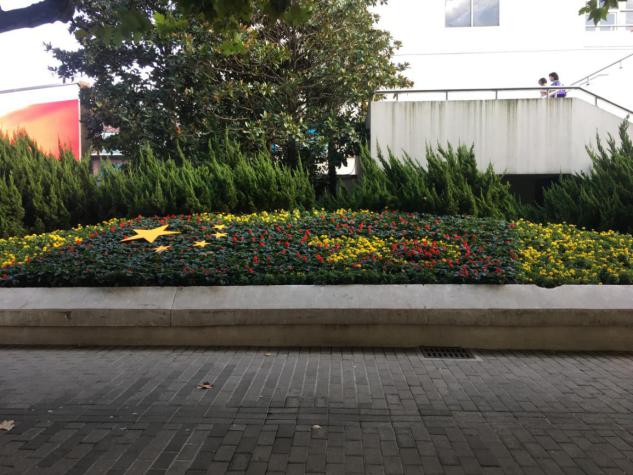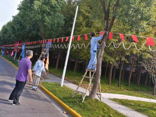 此次的“装扮”活动,历时一周。从草花放样、种植到插放彩旗,再到悬挂小国旗,校园中心的师傅们献计献策,出人出力,用实际行动表达对祖国母亲深深地爱意,也祝福祖国越来越好!