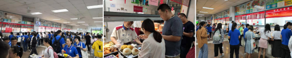 为给广大新生及家长提供好入校后暖心的第一餐,食堂提前做好开学前的各项安全检查和餐用具消毒工作,紧抓饮食安全,努力做到让师生满意、让家长放心。迎新期间,为方便新生及家长就餐,食堂延长供餐时间和延长校园卡充值时间;菜肴上,在注重营养搭配的基础上,食堂增加了菜品种类, 并特地为新生增设窗口,销售网红菜品,如玉米炒葡萄、油条灌蛋、玉兔蹲三鲜、火山土豆等;服务上,夏雨厅派有专人提供就餐咨询和服务疏导;食堂还免费提供大麦茶和姜茶,供家长休息时饮用。此外,餐饮部门还贴心准备了小点心和薏米红豆汤,分发给奋战在迎新一线的工作人员。