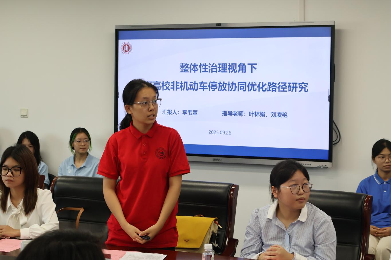 9月26日,《整体性治理视角下上海高校非机动车停放协同优化路径探究》项目汇报展示暨师生交流座谈会在闵行校区顺利召开。学生(研究生)工作处副处长江宇靖、后勤保障部副部长赵杭美、马克思主义学院辅导员叶林娟等相关负责人出席会议。20余名学生代表参与交流座谈。会议由后勤保障部综合办公室副主任刘凌艳主持。