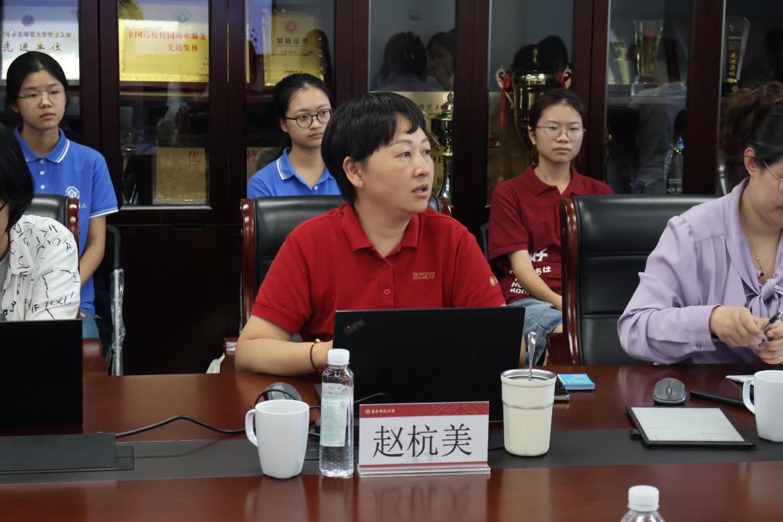 赵杭美做总结讲话。她充分肯定了项目组取得的丰硕成果及部门协同育人模式的显著成效。她从车辆体量较大、停车资源稀缺、管理力量有限与师生诉求多元等多重矛盾介绍了学校非机动车管理的痛点问题和现实挑战。她强调,项目组扎实的研究成果与可行的优化建议,为后续精准施策提供了关键依据。她表示,项目结项是“华师智慧”转化为“华师治理”实践的新起点,并寄语同学们争做校园文明的“传播者”与“倡议者”,期待通过各部门持续协同,将“多元共治”理念落到实处,共同构建整洁、安全、有序的校园环境。