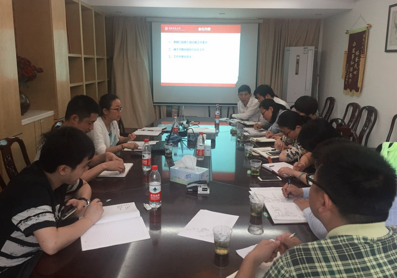 会上,宿舍与物业管理办公室宋胜发老师还就防汛防台、安全工作、保安培训、场地租赁等工作进行了布置,解小宇老师就毕业生、交流生等退宿工作进行了具体说明。